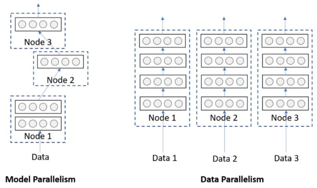 目前分布式训练的方法中主要分为数据并行与模型并行两种方法,其中在大多实验中以数据并行为主。模型并行主要存在于工业应用中,一般模型较大、训练数据是学术实验中训练数据的几何倍数。